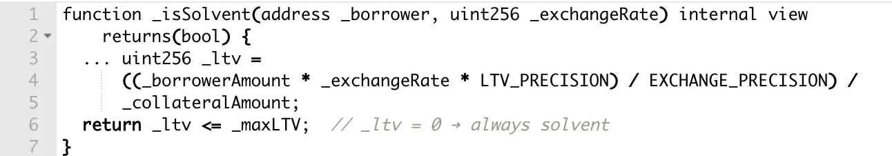 With an exchange rate of zero, the protocol calculated a zero LTV (Loan-to-Value) ratio.